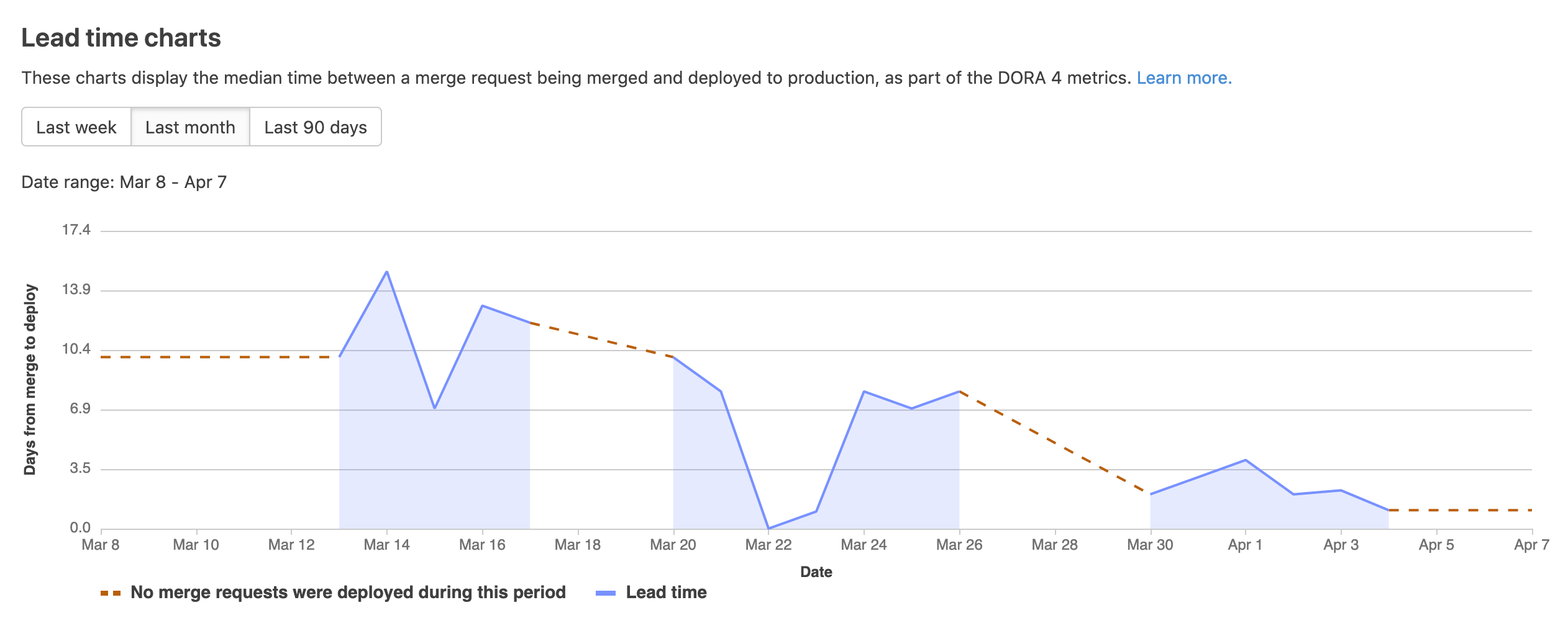 - 对于未部署合并请求的时间段,图表呈现红色虚线。