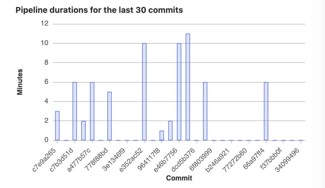 CI/CD 分析显示流水线成功和失败的历史记录,以及每个流水线运行的时间。
