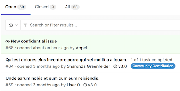 私密议题是仅对具有足够权限的项目成员可见的议题。 开源项目和公司都可以使用私密问题来保护安全漏洞的私密性或防止意外泄露。