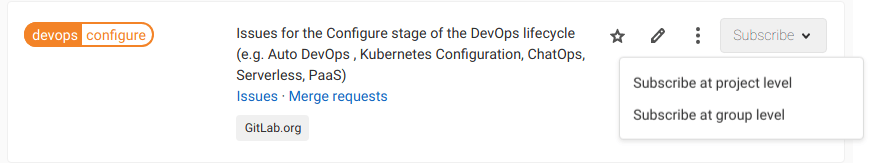如果您从项目中订阅群组标记,您可以选择仅订阅项目或整个群组的标记通知。